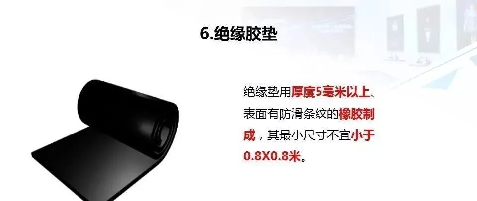 8.检查配电柜前、后地面是否铺设了绝缘胶垫,绝缘垫的长度应大于配电柜的宽度。