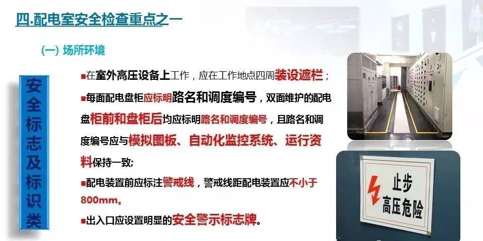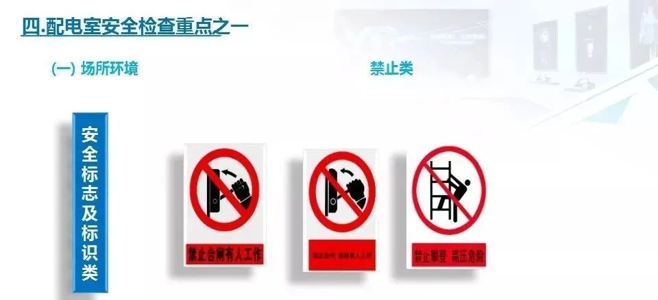 2.检查配电房是否在醒目位置悬挂了“高压危险、闲人免进”、“严禁烟火”等警示标识牌。