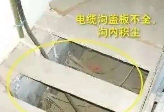 电缆沟盖板不全,沟内积灰