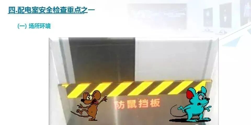 4.检查配电房、变(配)电室的出入口是否设置了高度不低于400mm的挡鼠板。