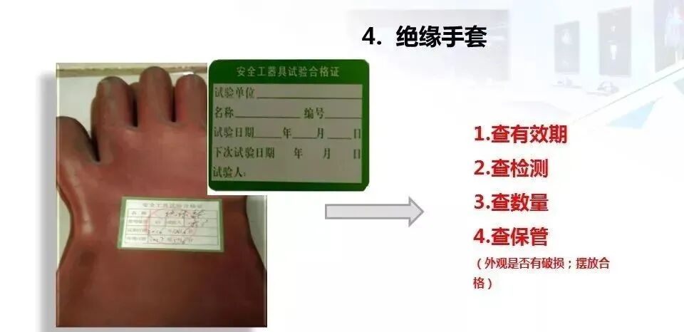 12.检查电气操作工具及防护用品是否完好可靠,有无定期检测记录和标识。